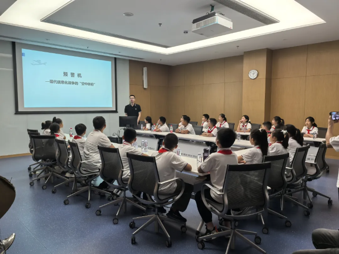 “什么是预警机?”“预警机的作用是什么?”“世界上能造预警机的国家有哪些?”在这样的问题中,孩子们懵懂着,探索着,领悟着。这一场从课堂到展览、再到实地观摩预警机的国防教育之旅,在孩子们幼小的心灵中播种下了强军报国的种子。