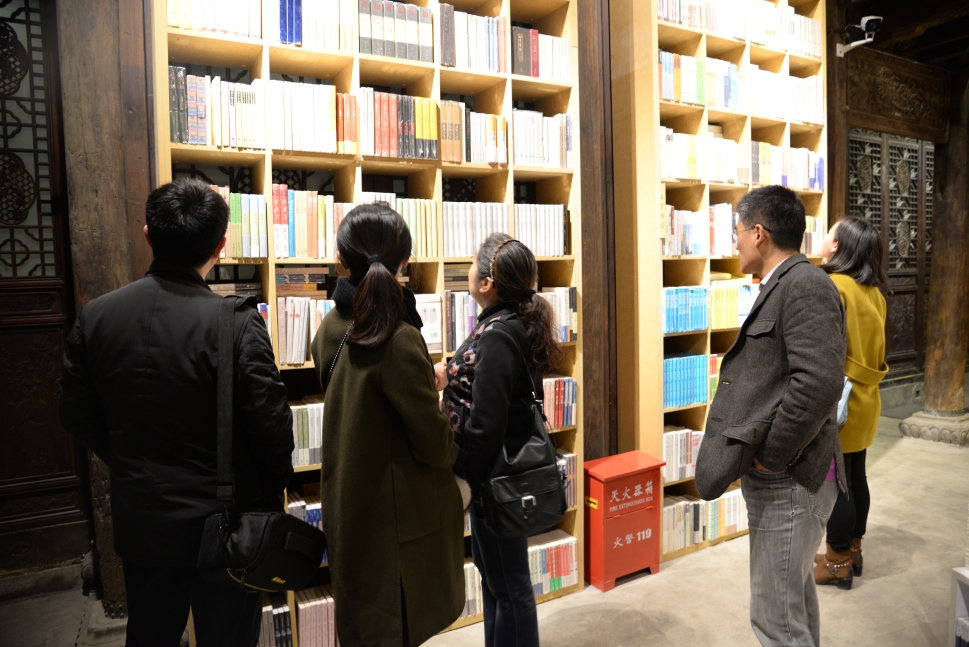 步入书屋,虽然空间不大,但整墙面都是书架,让人仰视。其文化风格浓郁的博物馆式书店群落,给人全新的立体图书阅读感受,让人仿佛走进了书店的博物馆。书店的静谧,让大家一下子安静了起来,在书的海洋中畅游,搜寻属于自己的那片空间。书店二楼,有片开阔的活动空间,会不定期地举办学术交流、主题演讲、主题论坛等活动,是思想和文化交流碰撞之处,在这里,可以聆听得到来自世界的声音。